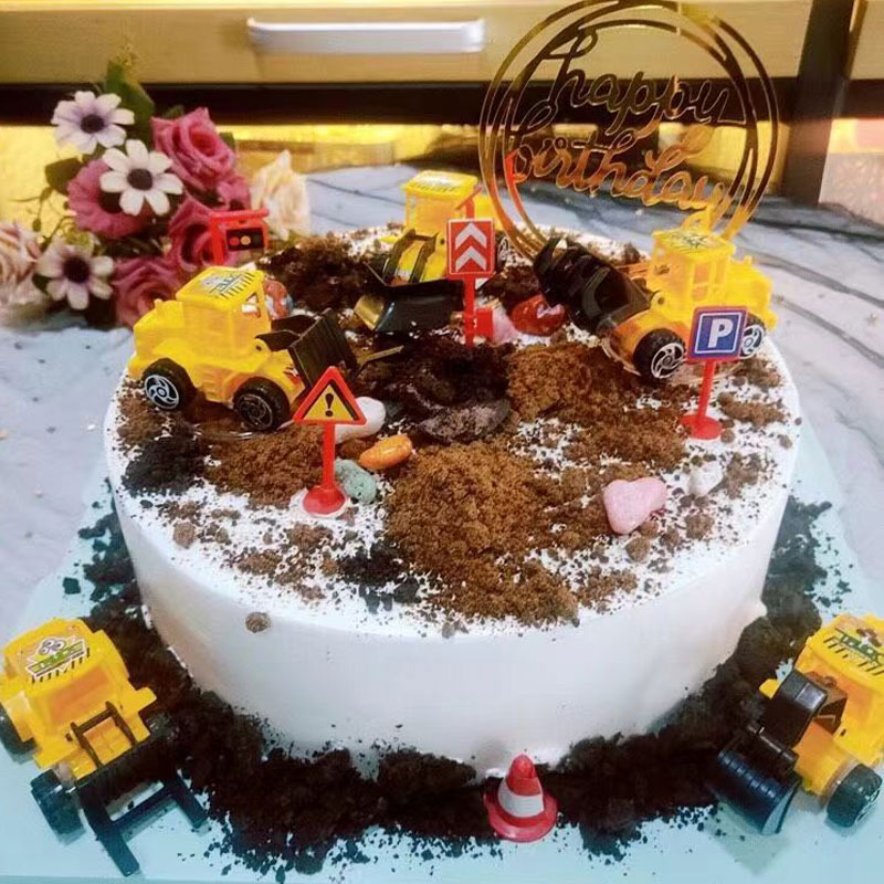 8寸挖机插件鲜奶蛋糕(款式和尺寸均可定制,详情请咨询客服)