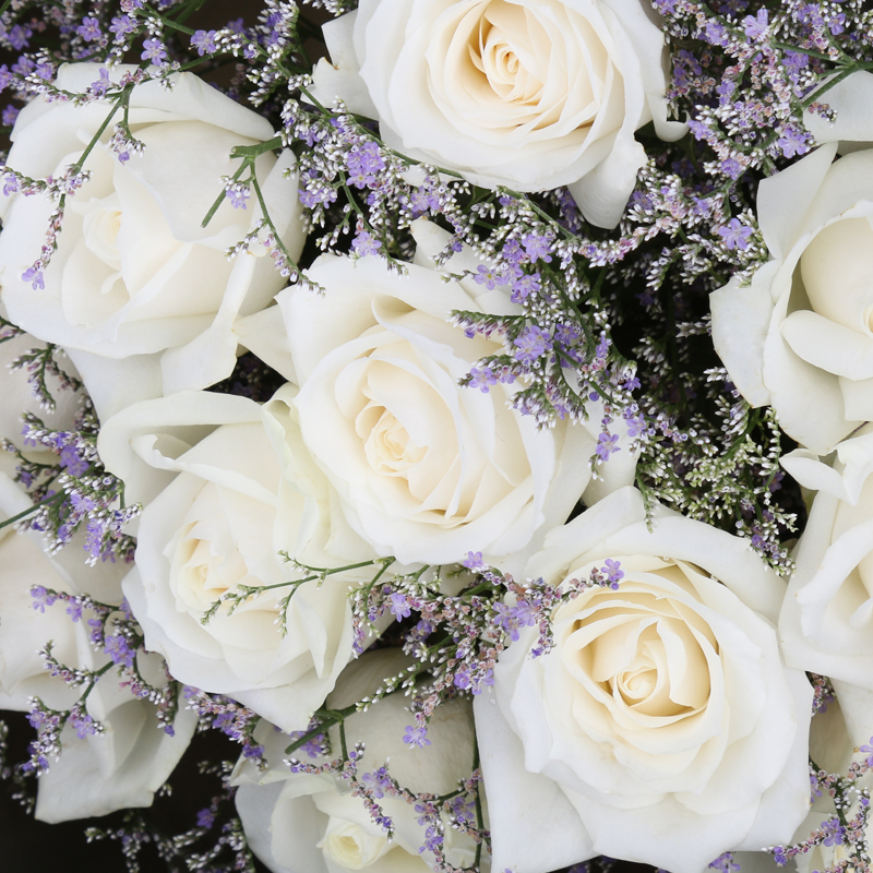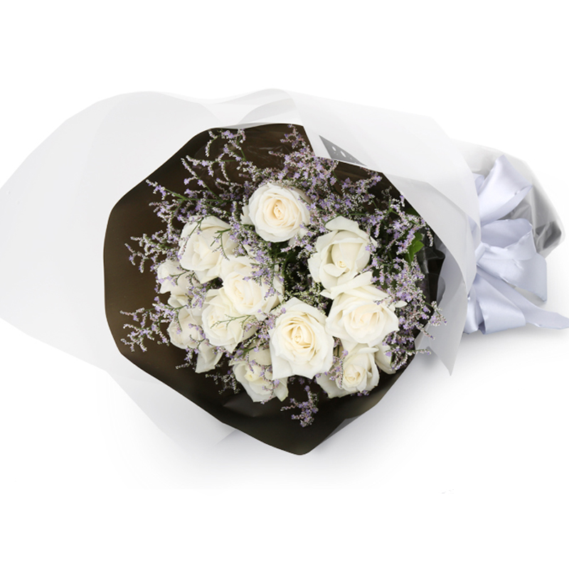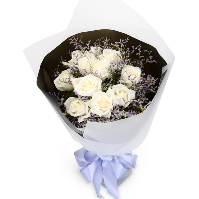11枝精品白玫瑰,搭配适量情人草