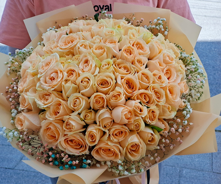 99枝香槟玫瑰,外围高山积雪